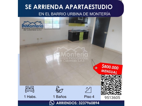 SE ARRIENDA APARTAESTUDIO EN EL BARRIO URBINA DE MONTERIA