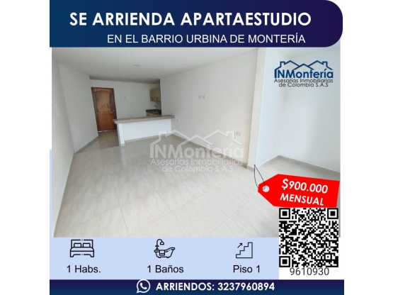 SE ARRIENDA APARTAESTUDIO EN EL BARRIO URBINA DE MONTERIA