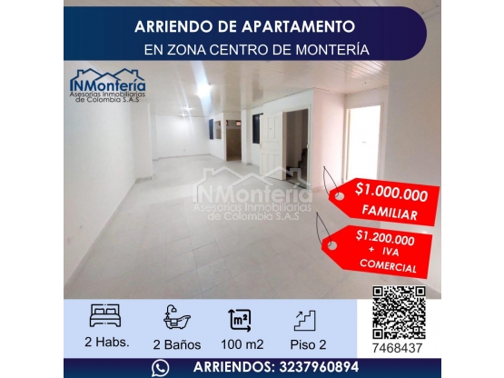 ARRIENDO DE APARTAMENTO EN ZONA CENTRO DE MONTERIA