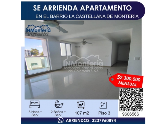 SE ARRIENDA APARTAMENTO EN EL BARRIO LA CASTELLANA DE MONTERIA