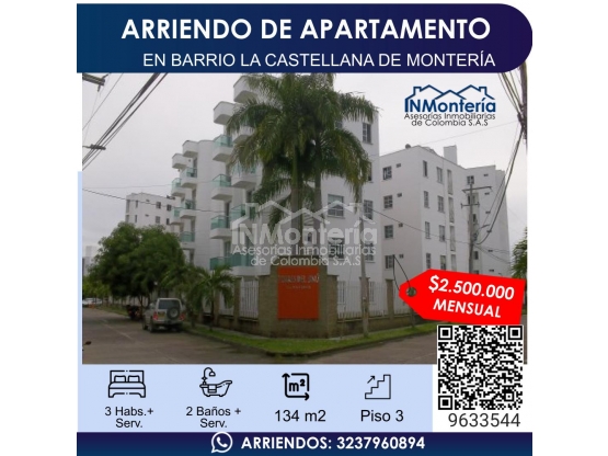 ARRIENDO DE APARTAMENTO EN EL BARRIO LA CASTELLANA DE MONTERIA