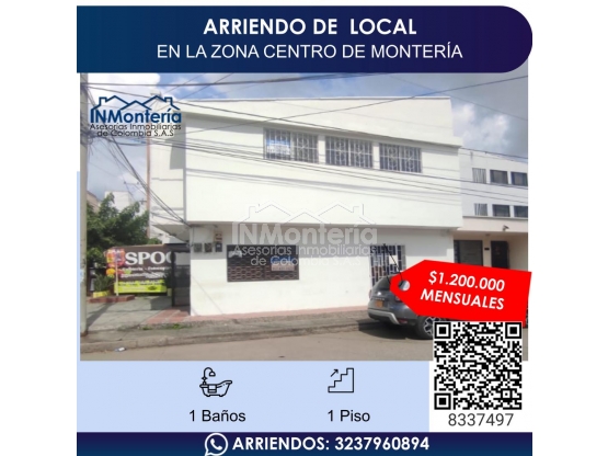 ARRIENDO DE LOCAL EN LA ZONA CENTRO DE MONTERIA