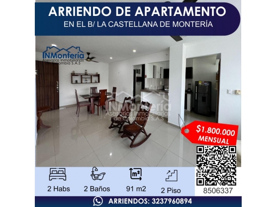 ARRIENDO DE APARTAMENTO EN LA CASTELLANA DE MONTERIA