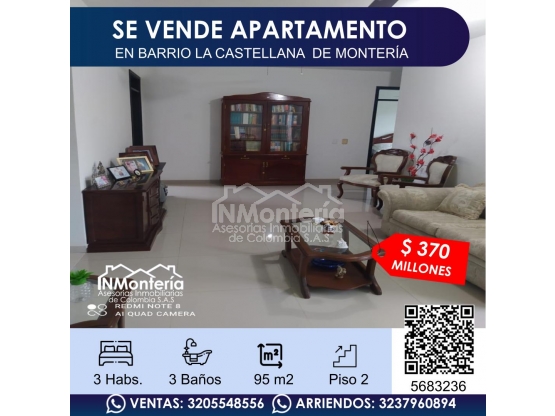 SE VENDE APARTAMENTO EN LA CASTELLANA DE MONTERIA