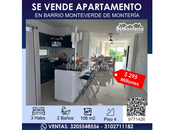 🏢SE VENDE APARTAMENTO EN BARRIO MONTEVERDE DE MONTERÍA
