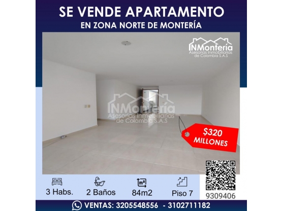 SE VENTA APARTAMENTO EN ZONA NORTE DE MONTERIA