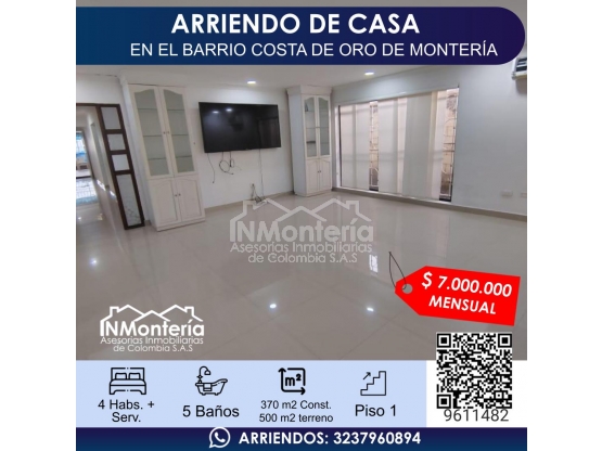🏡 ARRIENDO DE CASA EN EL BARRIO COSTA DE ORO – MONTERÍA