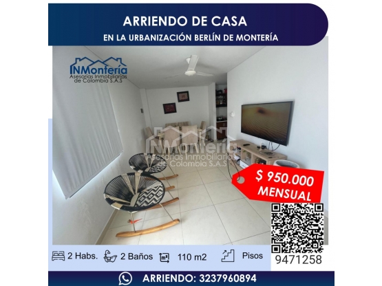 ARRIENDO DE CASA URBANIZACION BERLÍN DE MONTERIA
