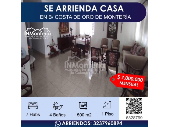SE ARRIENDA CASA EN BARRIO COSTA DE ORO DE MONTERIA