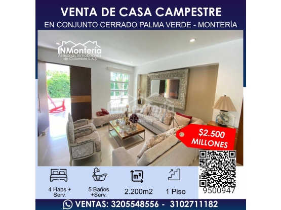 VENTA DE CASA CAMPESTRE EN CONJUNTO CERRADO PALMA VERDE - MONTERIA