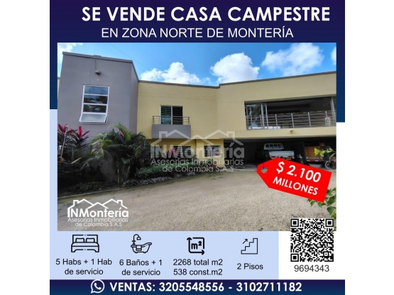 SE VENDE HERMOSA CASA CAMPESTRE EN ZONA NORTE DE MONTERIA
