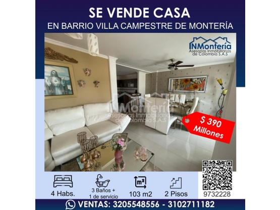🏡 SE VENDE HERMOSA CASA EN BARRIO VILLA CAMPESTRE DE MONTERIA