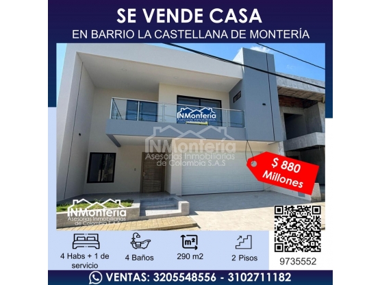 SE VENDE CASA EN BARRIO LA CASTELLANA (ZONA EXCLUSIVA) DE MONTERIA