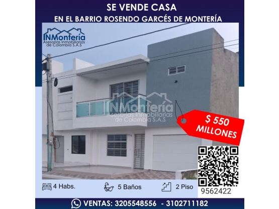 SE VENDE CASA EN EL BARRIO ROSENDO GARCÉS DE MONTERIA