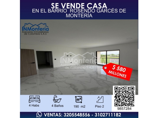 ✨🏠SE VENDE CASA DE DOS PISOS EN BARRIO ROSENDO GARCES DE MONTERIA