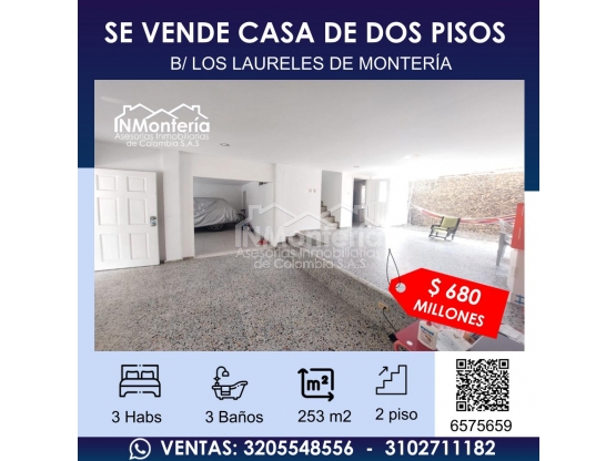 SE VENDE CASA DE DOS PISOS EN BARRIO LOS LAURELES DE MONTERIA