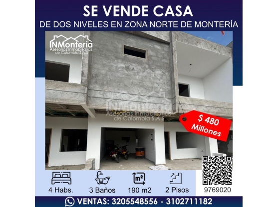 SE VENDE CASA DE DOS NIVELES EN ZONA NORTE DE MONTERIA