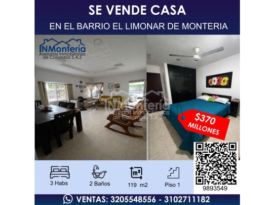 ✨🏠SE VENDE CASA DE EN EL BARRIO EL LIMONAR DE MONTERIA