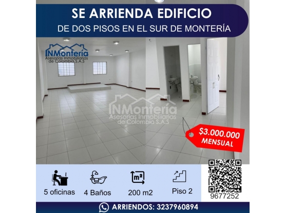 SE ARRIENDA EDIFICIO DE DOS PISOS EN ZONA SUR DE MONTERIA