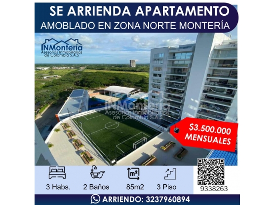 🏢 ¡SE ARRIENDA APARTAMENTO AMOBLADO EN ZONA NORTE DE MONTERÍA!