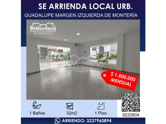 🏬 ¡Se arrienda local comercial en Urbanización Guadalupe – Margen Izquierda de Montería!