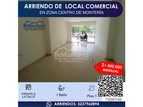 ARRIENDO DE LOCAL COMERCIAL EN LA ZONA CENTRO DE MONTERIA