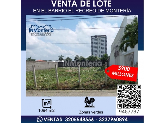 VENTA DE LOTE EN EL BARRIO EL RECREO DE MONTERIA
