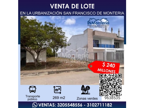 VENTA DE LOTE EN LA URBANIZACIÓN SAN FRANCISCO DE MONTERIA