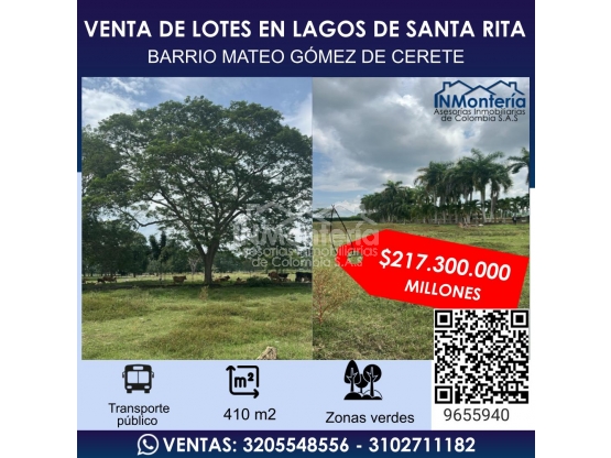 VENTA DE LOTES EN LAGOS DE SANTA RITA - BARRIO MATEO GOMEZ DE CERETE