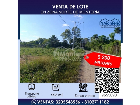 VENTA DE LOTE EN ZONA NORTE DE MONTERIA