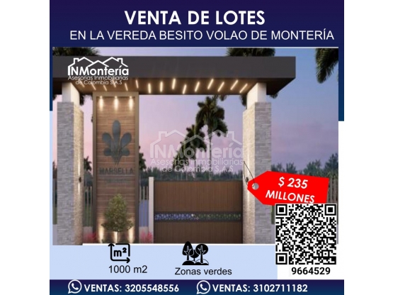 VENTA DE LOTES EN LA VEREDA DE BESITO VOLAO DE MONTERIA