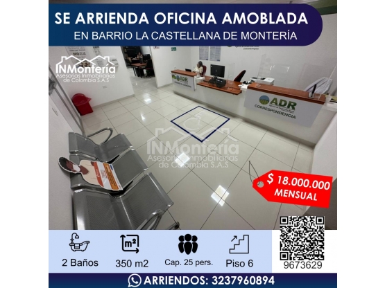SE ARRIENDA OFICINA AMOBLADA EN BARRIO LA CASTELLANA DE MONTERIA